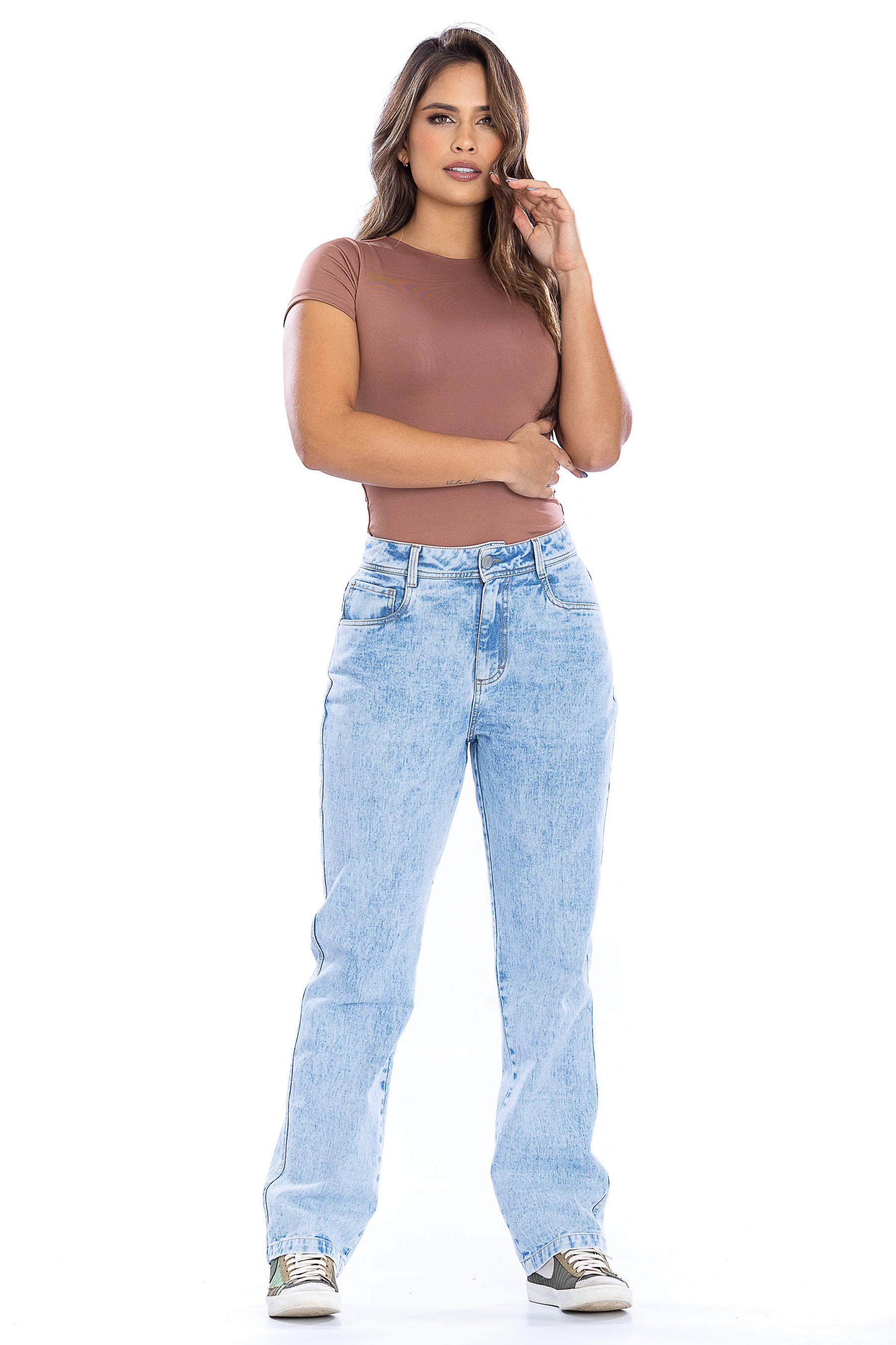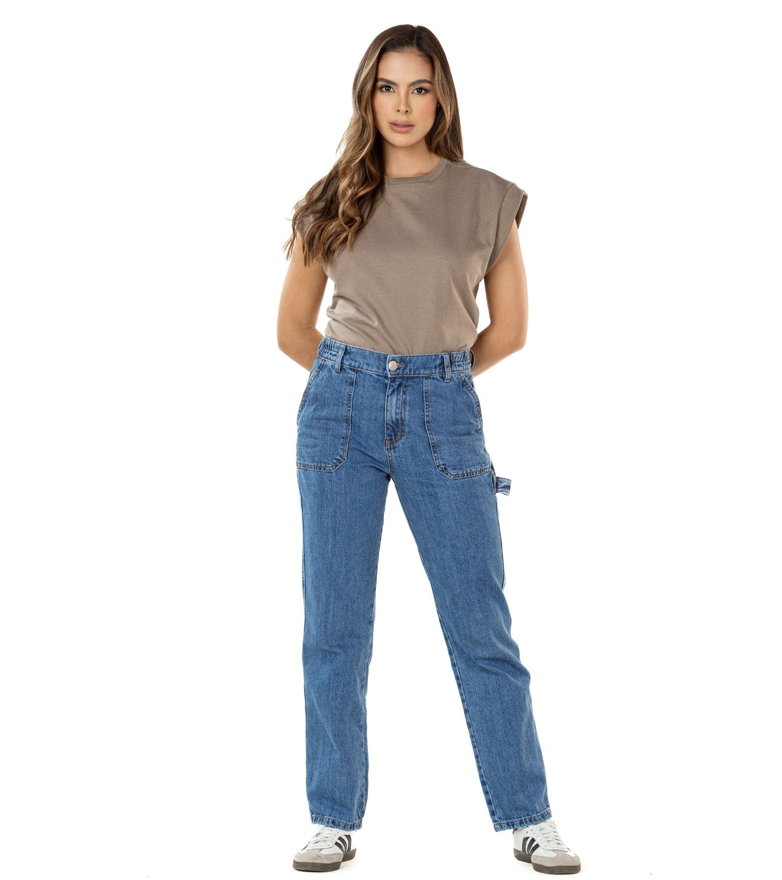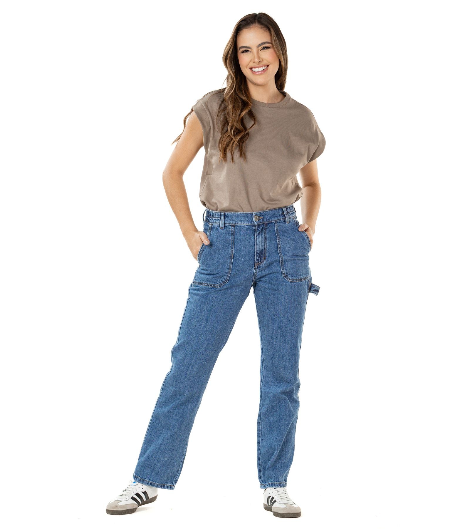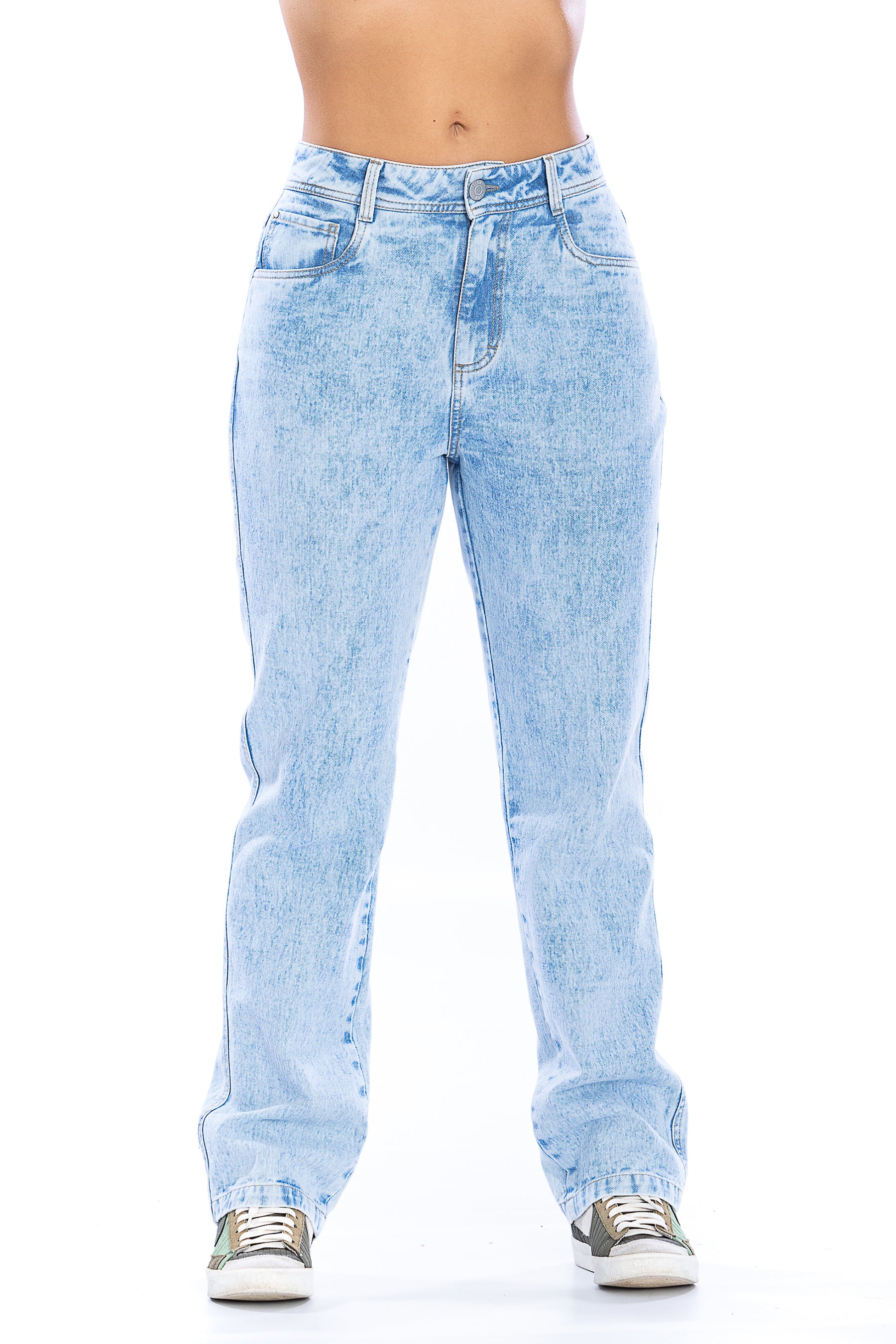 Jean Stretch Wide Leg Azul Medio Corte Diagonal Frontal