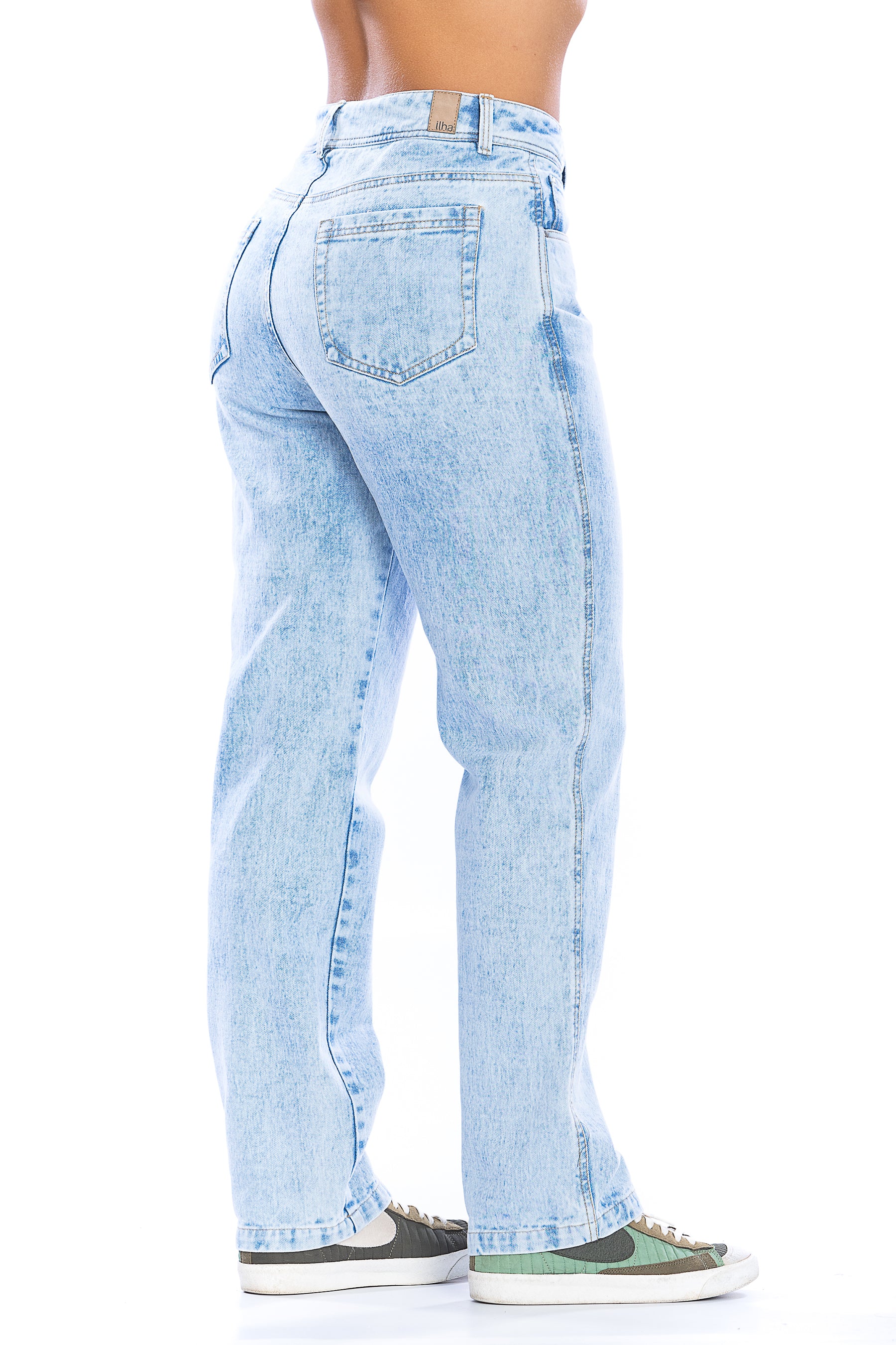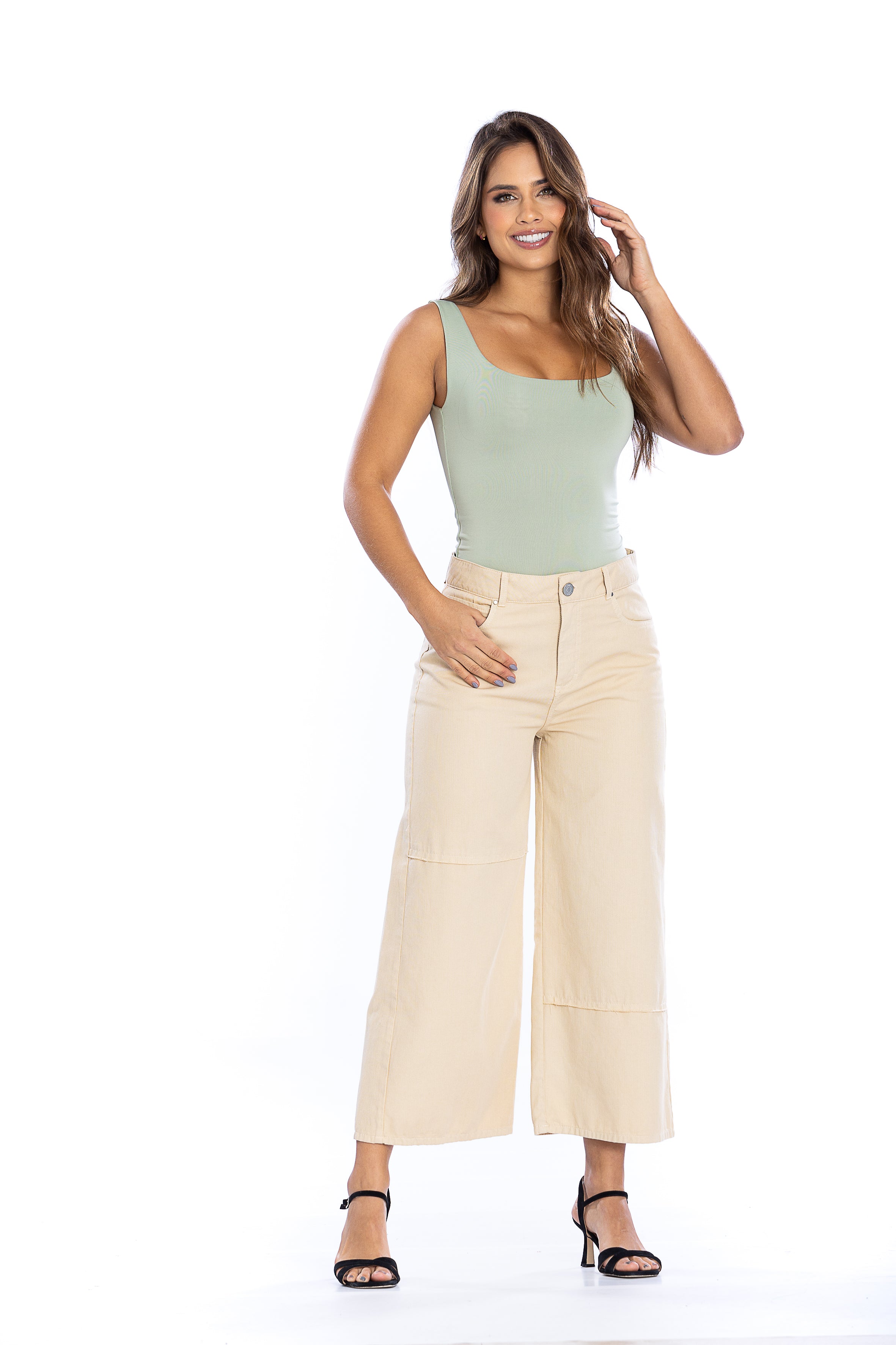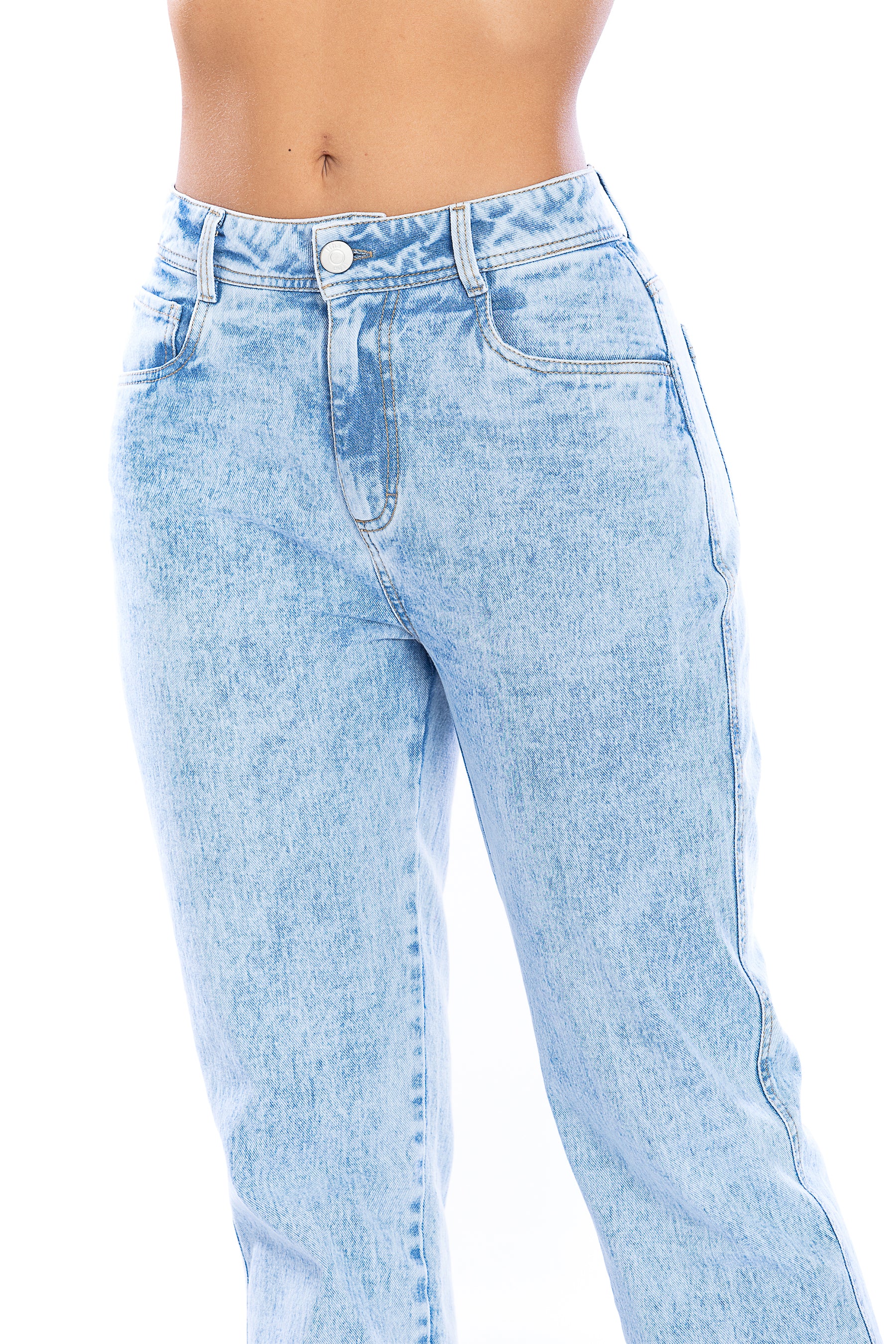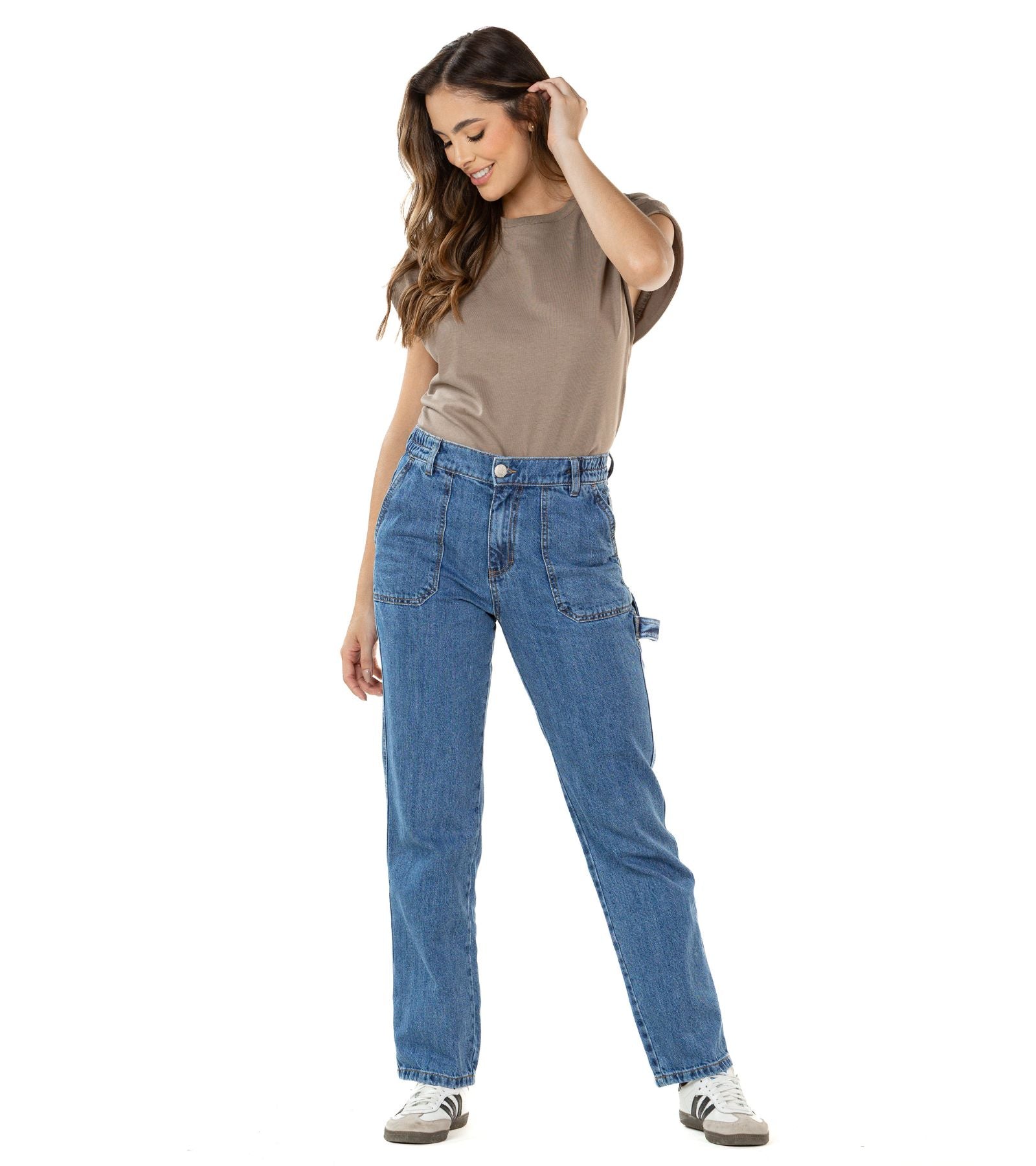 Jean Stretch Wide Leg Azul Medio Corte Diagonal Frontal