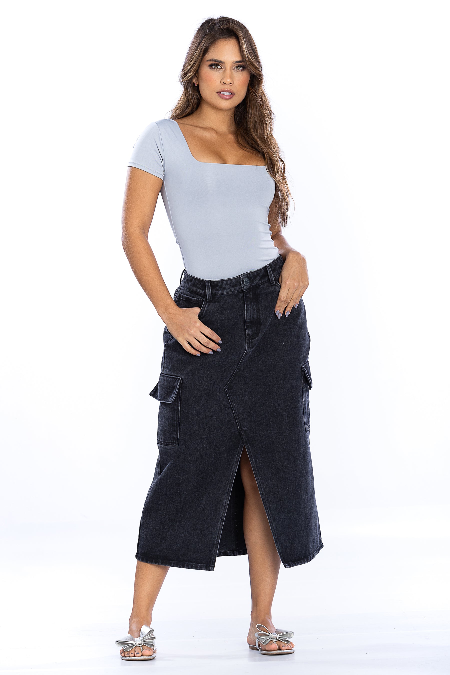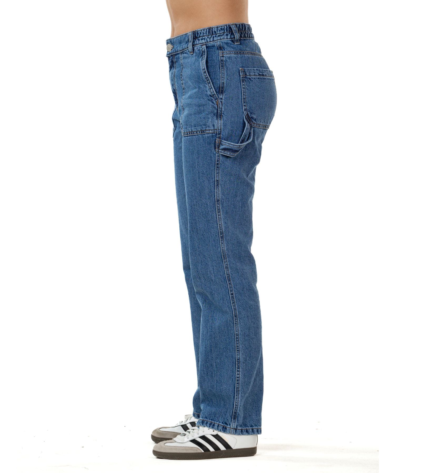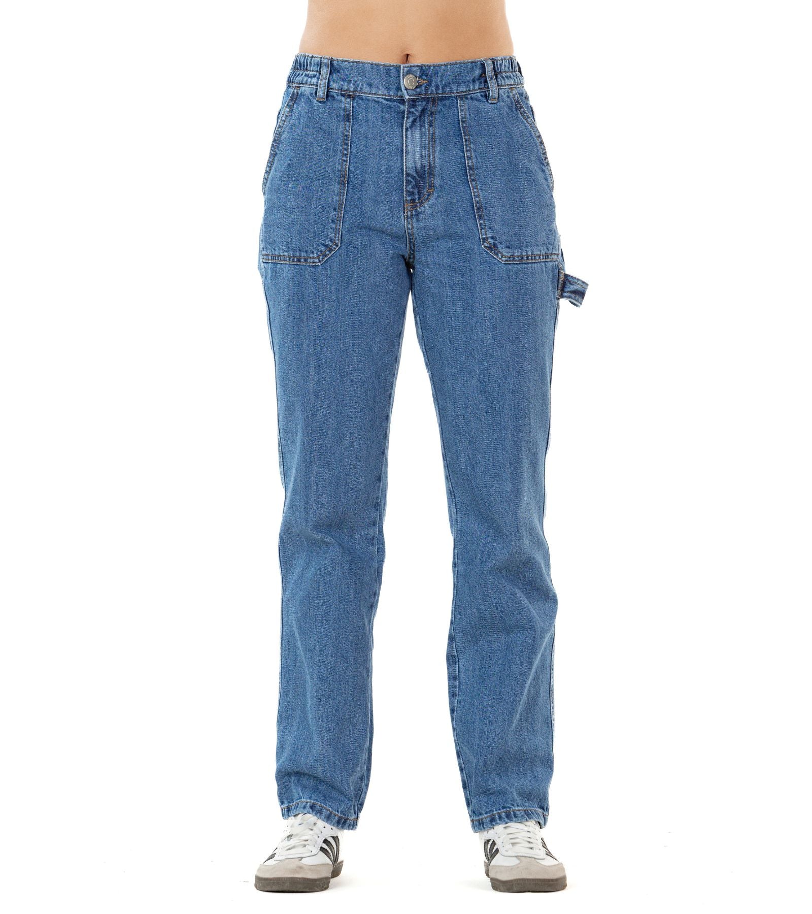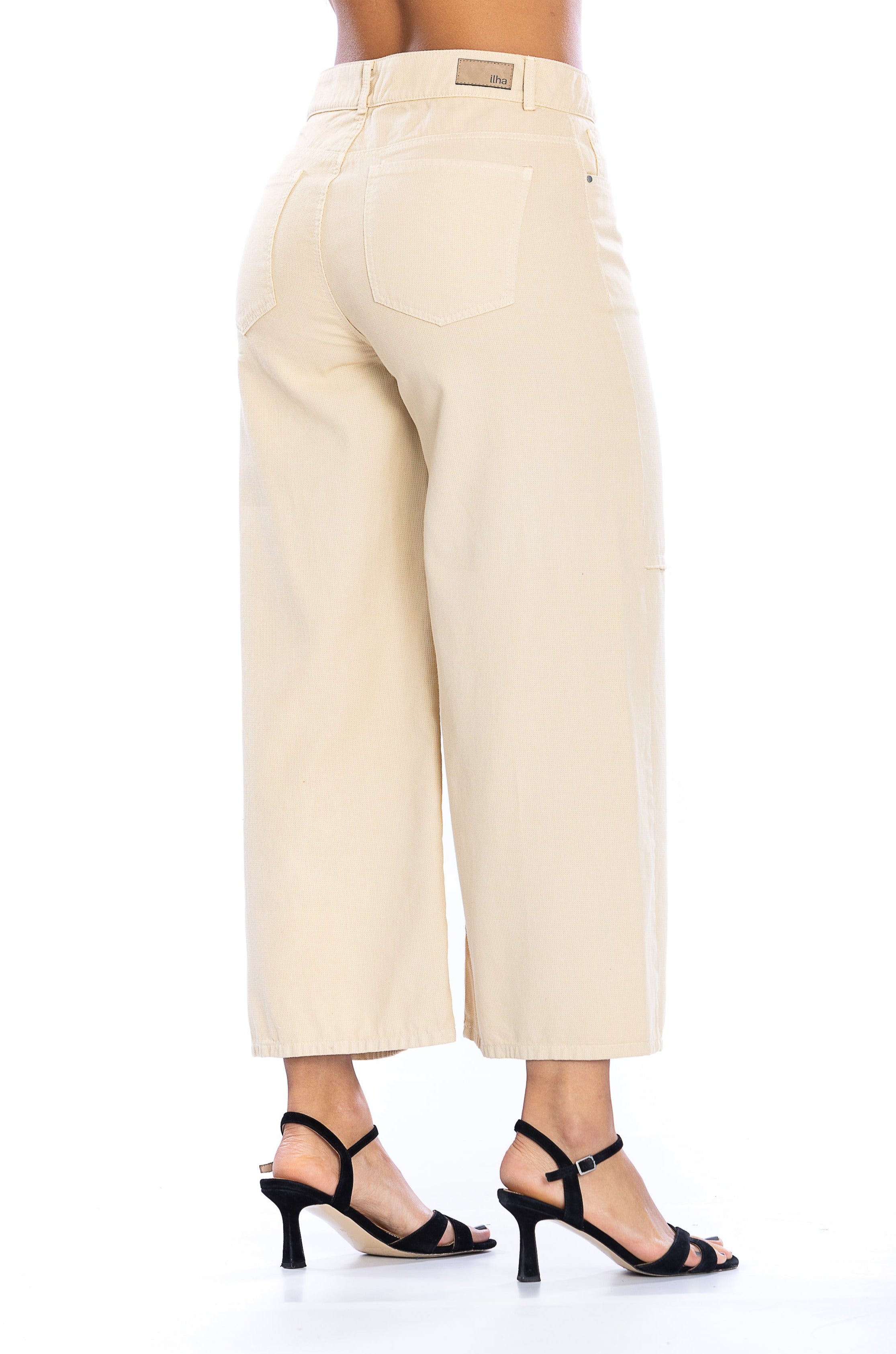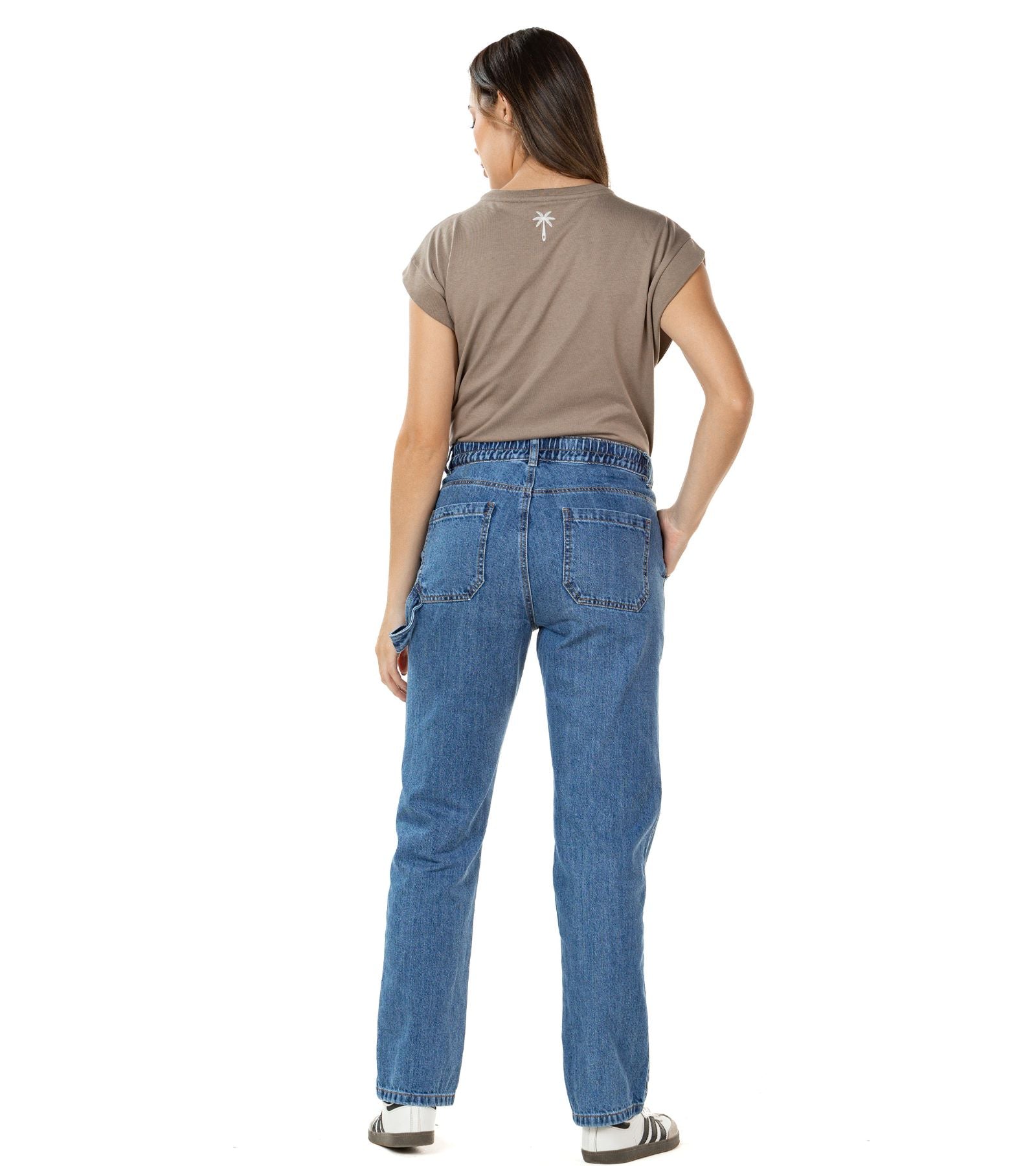 Jean Stretch Wide Leg Azul Medio Corte Diagonal Frontal