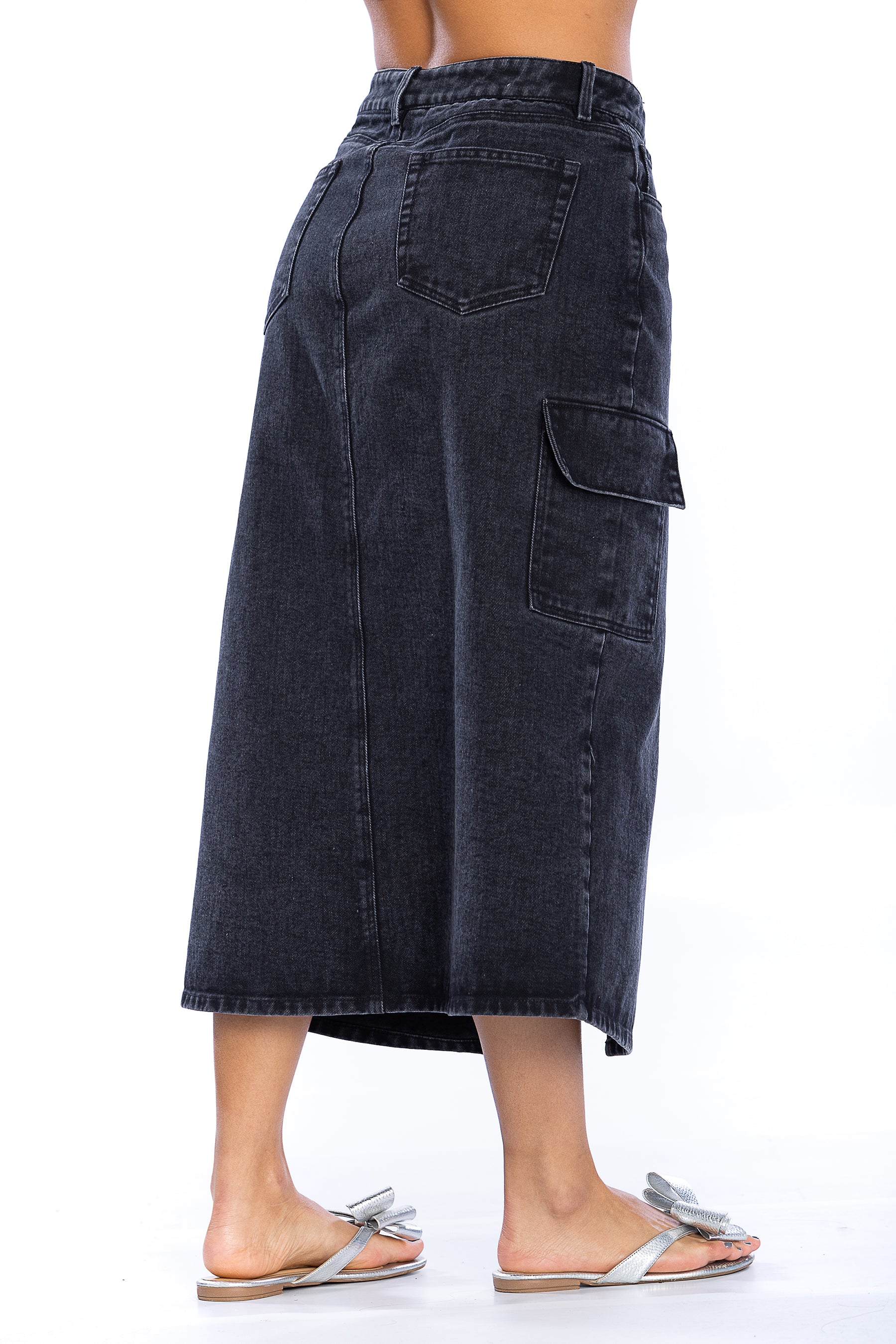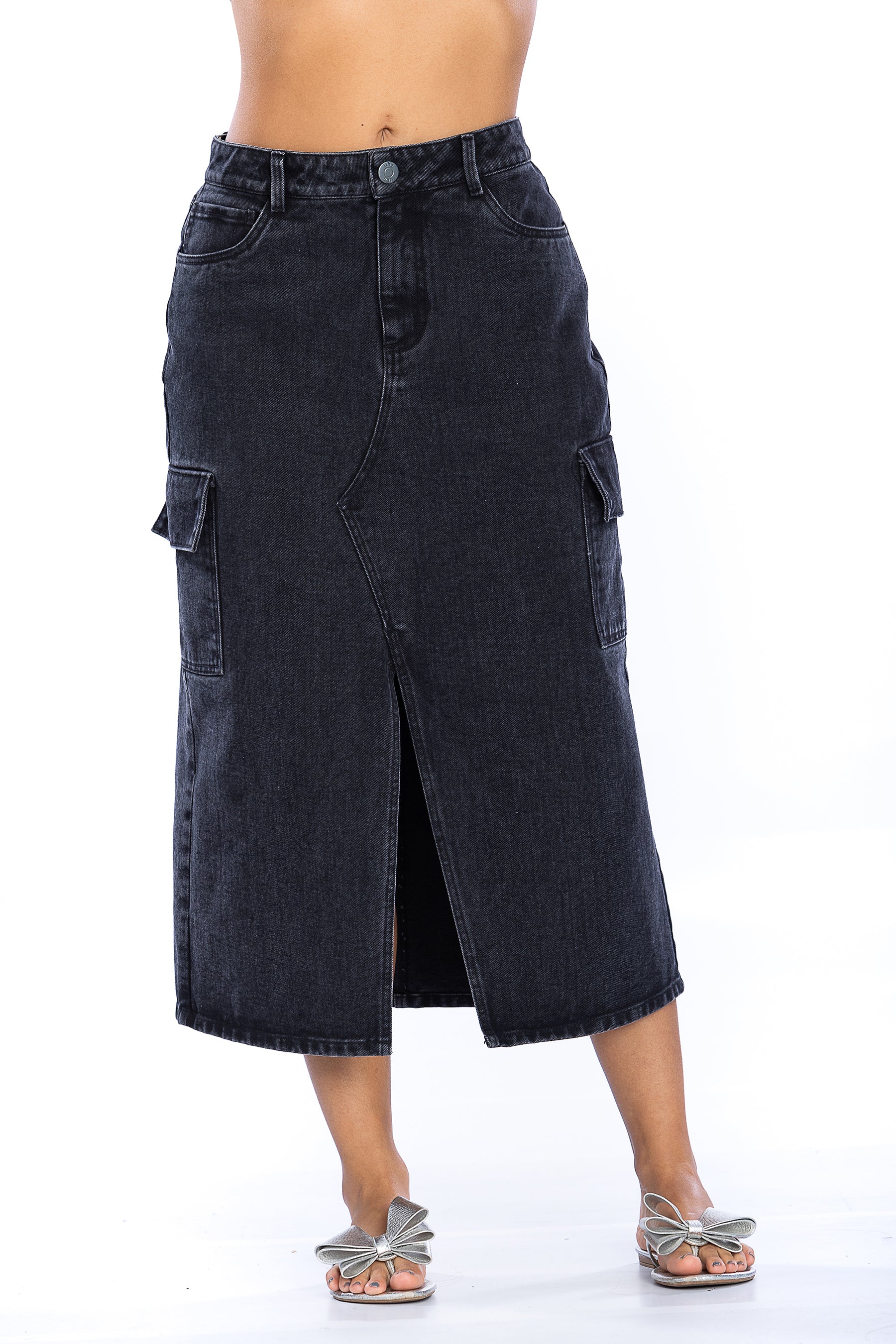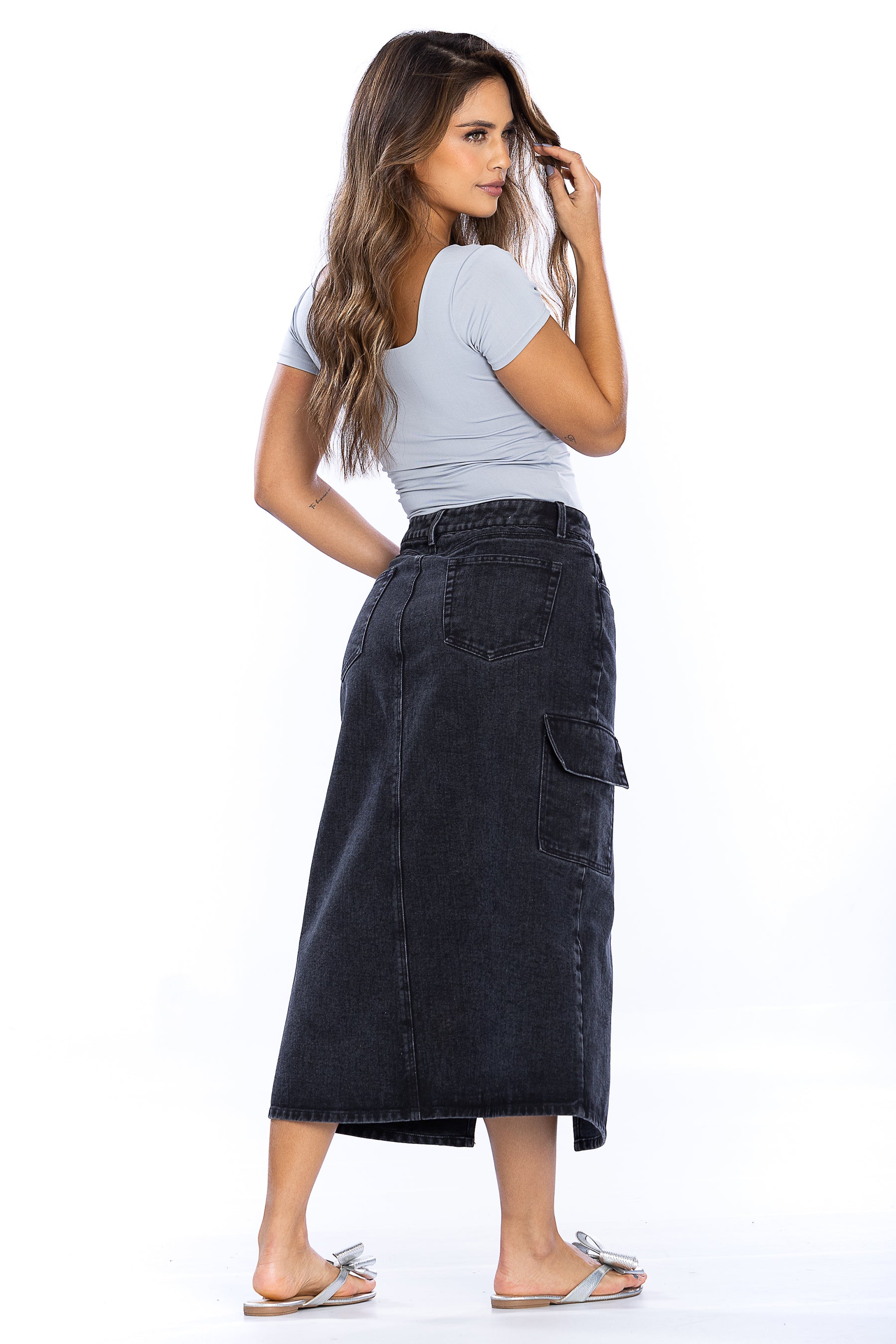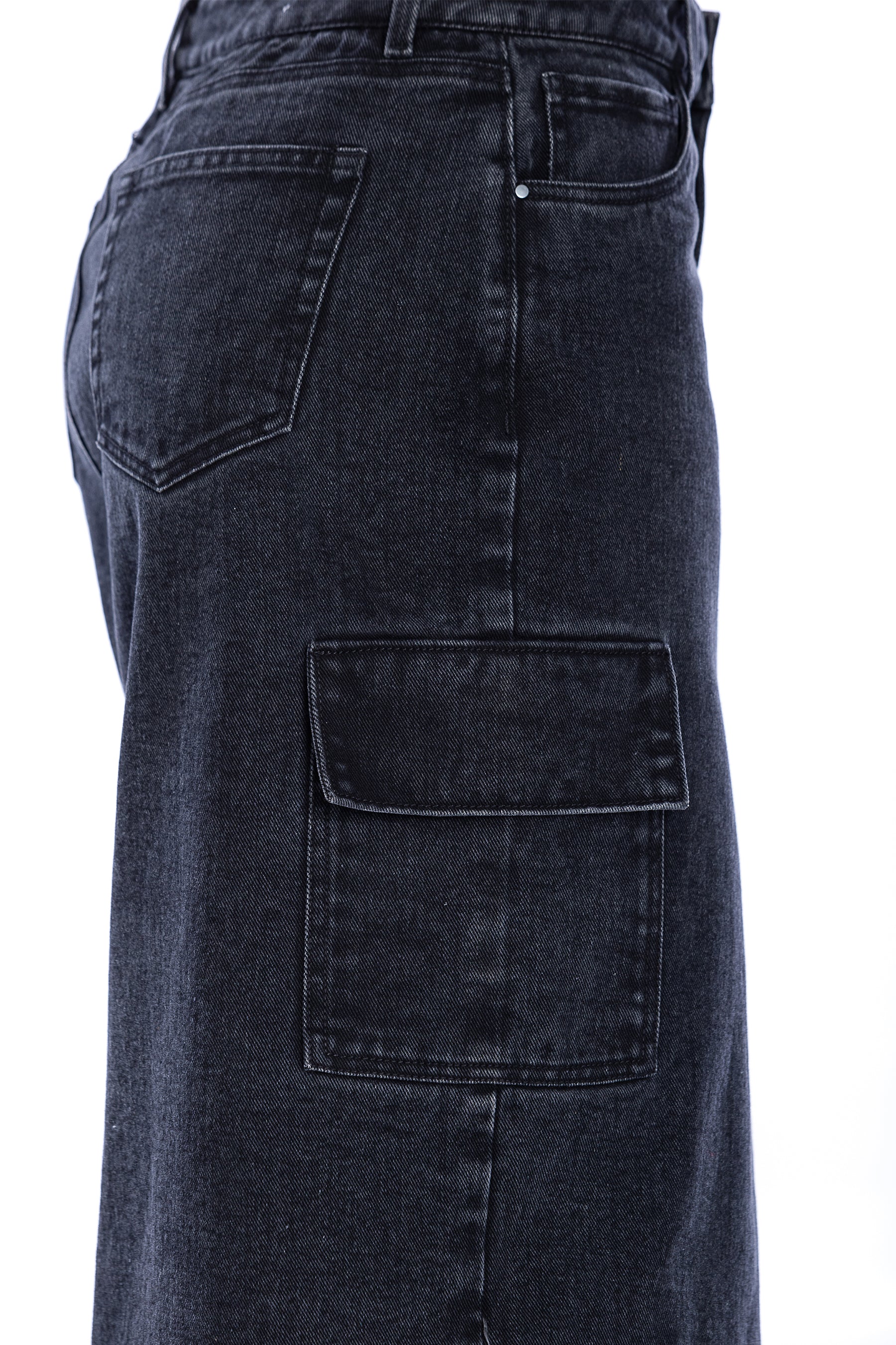 Jean Stretch Wide Leg Azul Medio Corte Diagonal Frontal