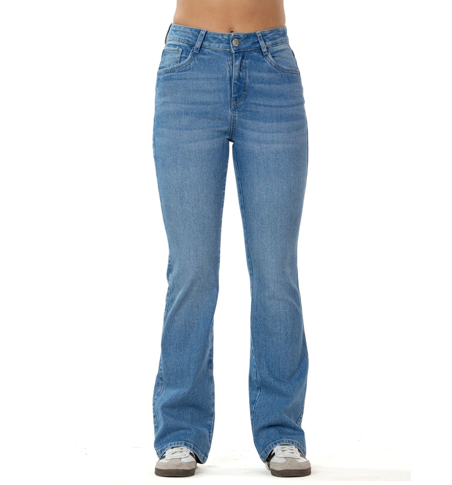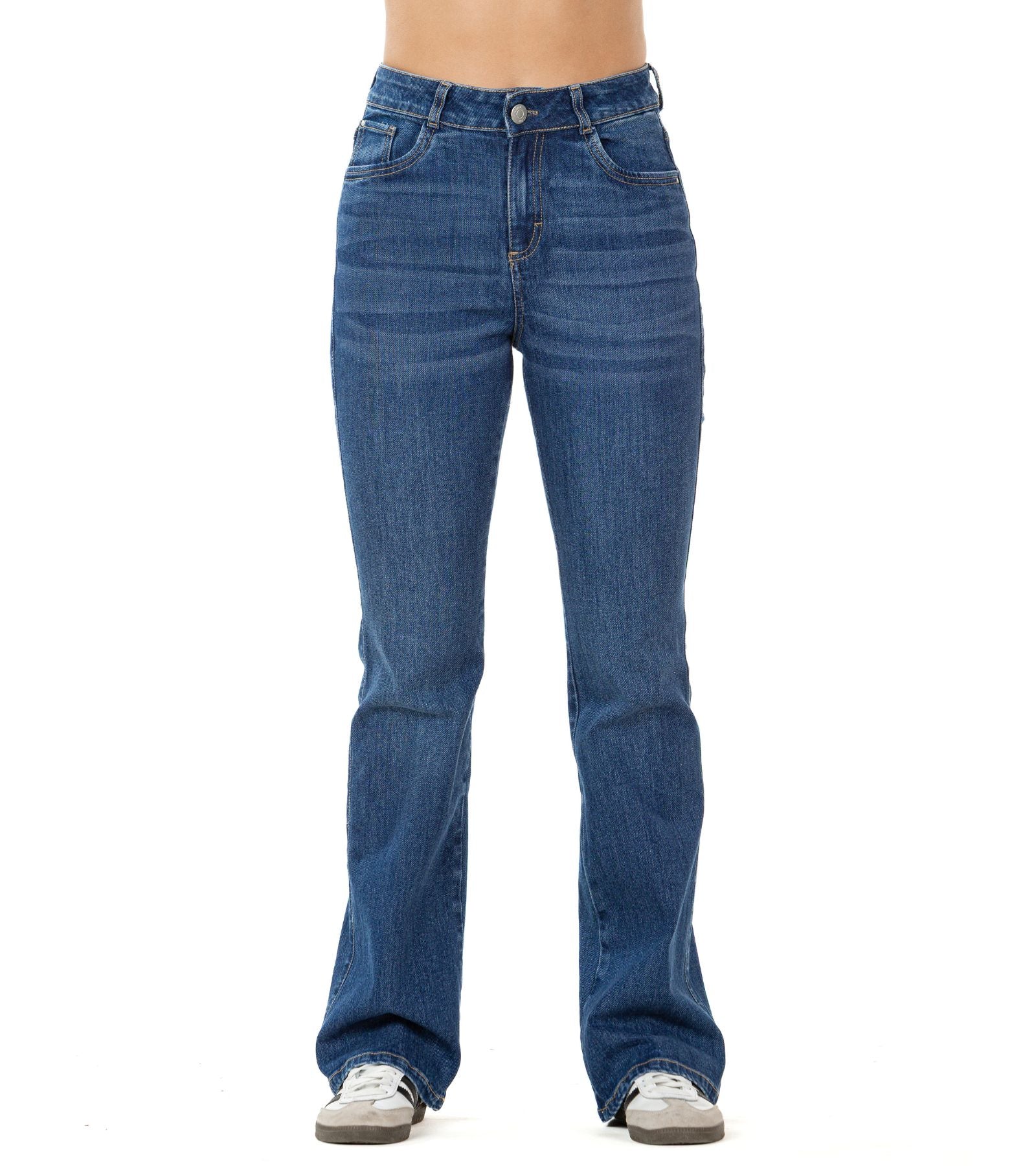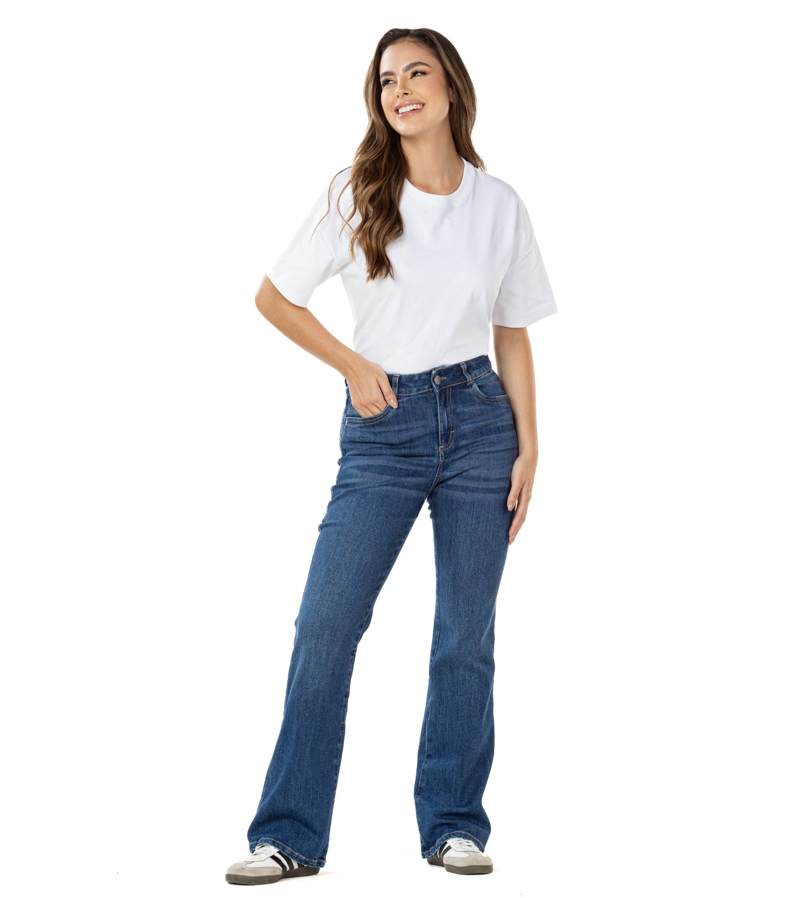 Jeans Stretch Azul Flare 5 Bolsillos Tiro Alto