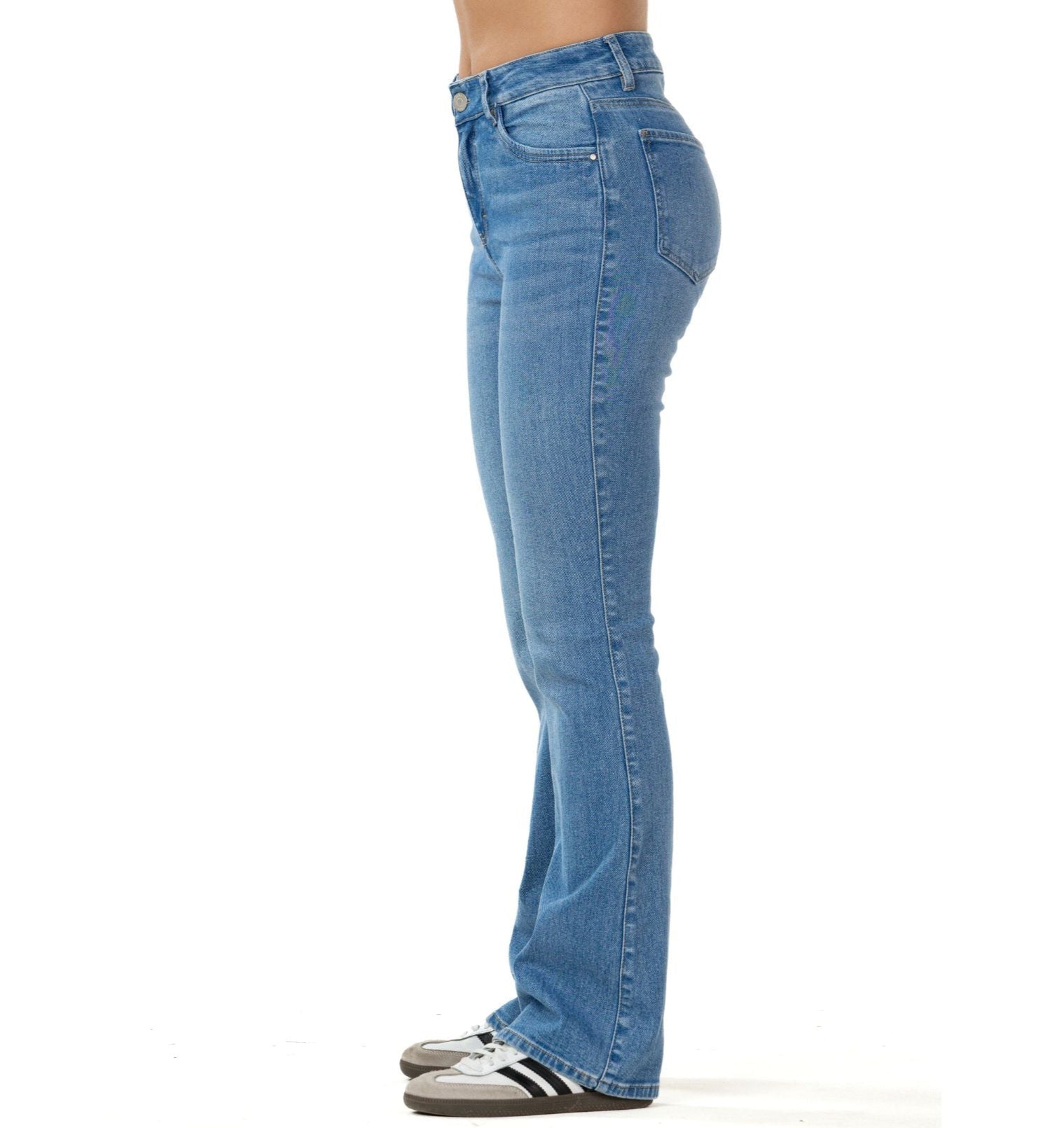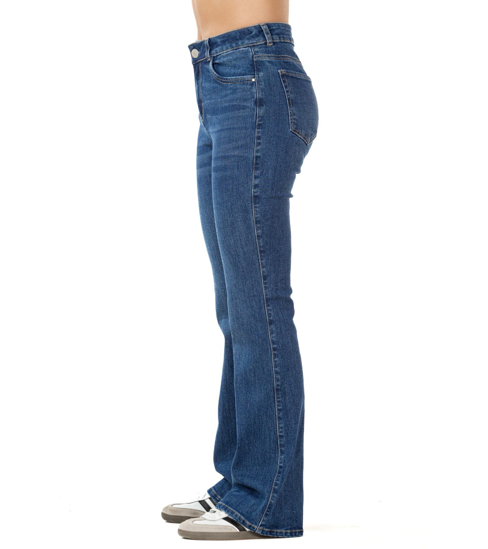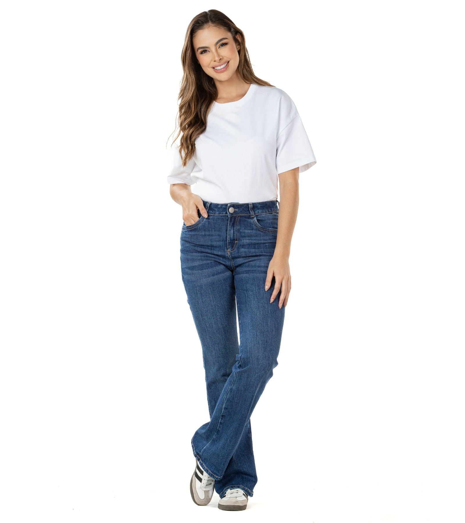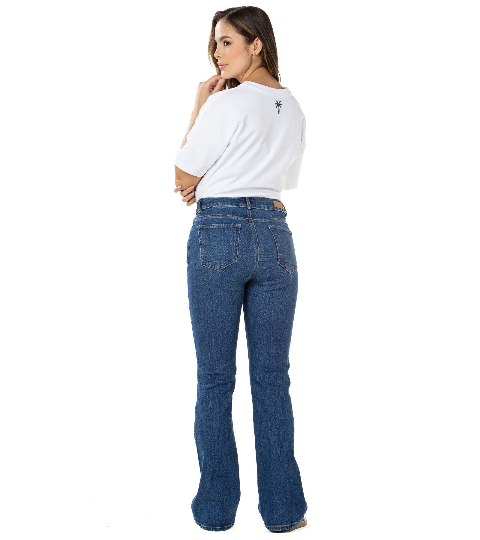 Jeans Stretch Azul Flare 5 Bolsillos Tiro Alto