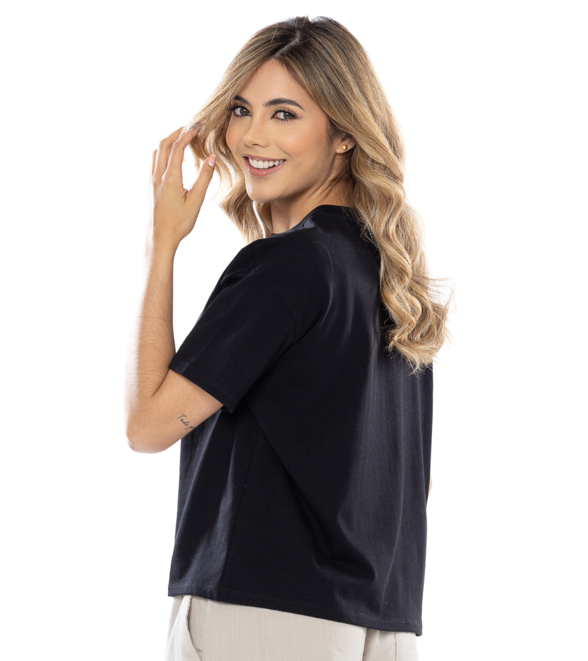 CAMISETA BOXY FIT MANGA CORTA NEGRA